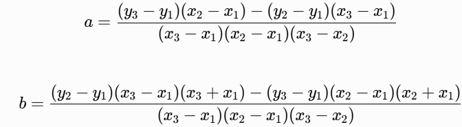 c by plugging any point back in: c = y1 - ax12 - bx1