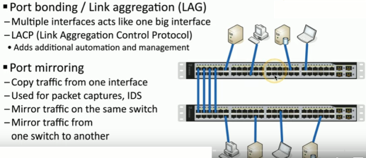 Port mirroring: copy frames out a particular (SPAN) port to a monitoring system, eg. IDS, IPS