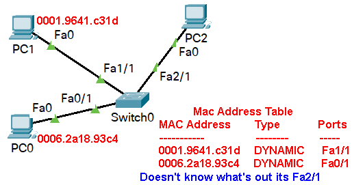 Forwards incoming frame to node if switch knows which of its ports is the one connected to that node.