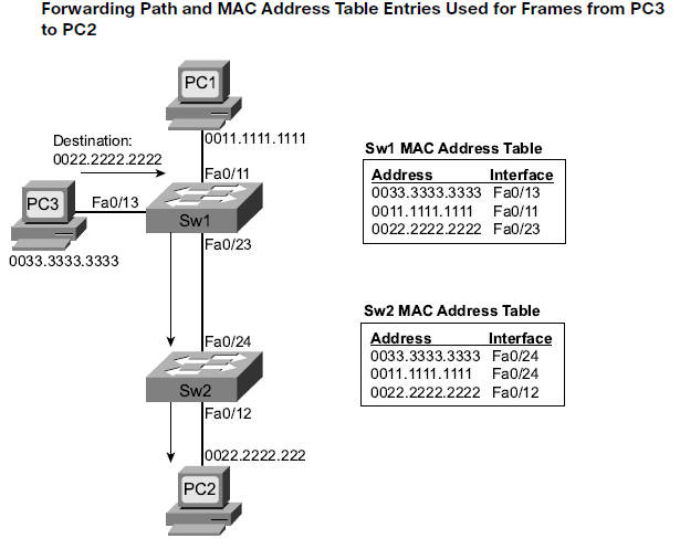Builds up a MAC address and port table.