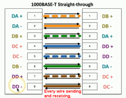 1/10Gbps: all 4 pairs used and each pair used to both Tx and Rx.