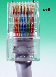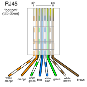 What color wire to what pin of RJ-45. Wire-to-pin assignment (pinout) as per 568A/B spec.: