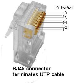 RJ-45 (8P8C) connector/plug into port/jack. Terminates the cable.