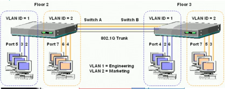 Trunk link between switches tags frames with 802.1Q 4B Vlan# header, 12 bits of which is VLAN ID.