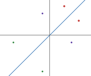 A line through the origin connects each pair of symmetric points.