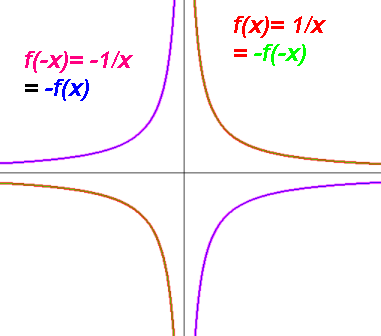| 1/x | -1/x | -1/x | 1/x | Origin, Odd. |