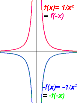 | 1/x2 | 1/(-x)2 | -1/x2 | -1/(-x)2 | Y-axis, Even. |