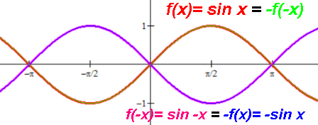 | sin x | sin -x | -sin x | -sin -x | Origin, Odd. |