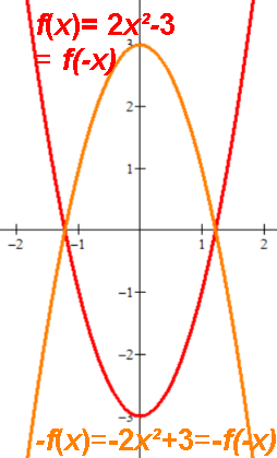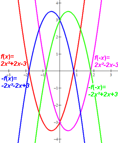 | 2x2-3 | 2x2-3 | -2x2+3 | -2x2+3 | Y-axis, Even. Quadratic, no bx term. |