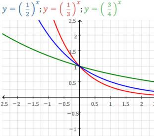If b<1, (i.e. between 0 and 1) the curve is decreasing (goes down to the right):