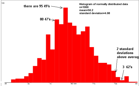 Most people are near the average, that's "normal". Fewer and fewer people are shorter and shorter or taller and taller than average.