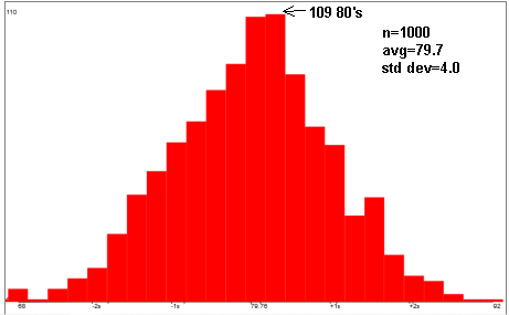 Count the frequency of each number of +'s. Graph these counts in a histogram: normal distribution!